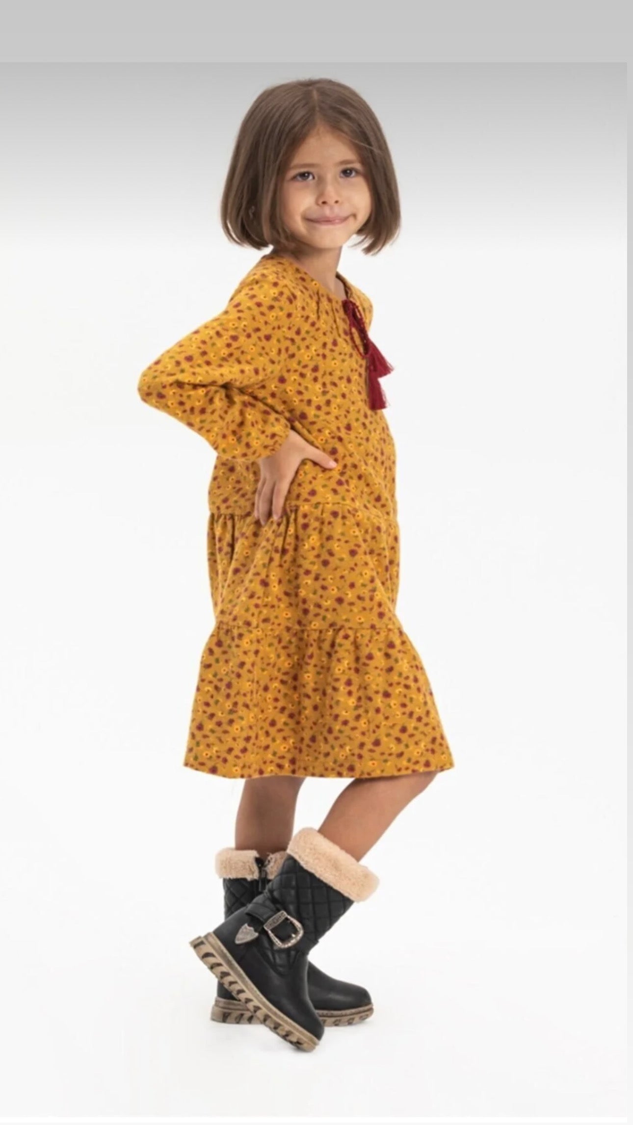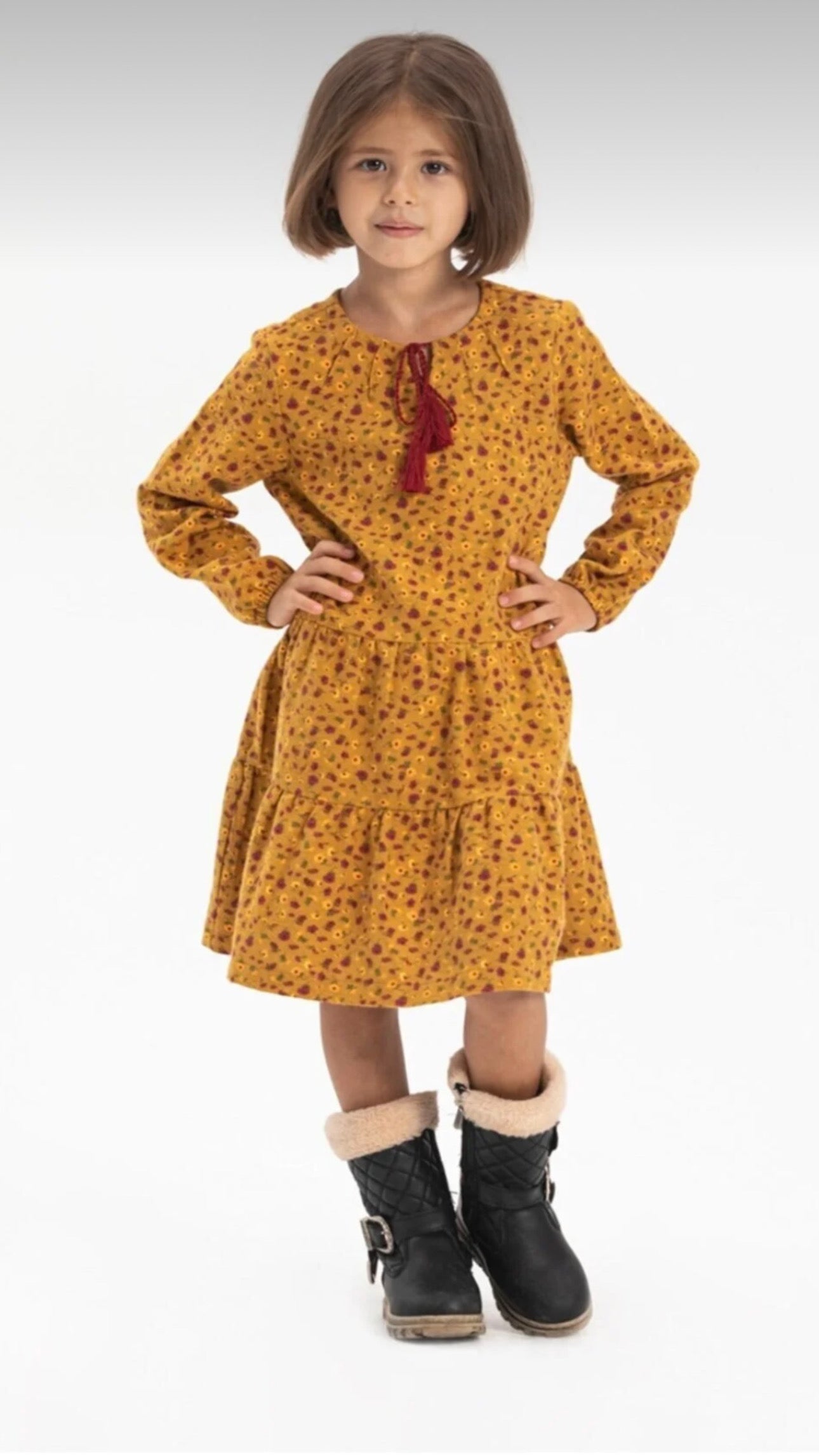 Çocuk Hardal Rengi Pazen Elbise