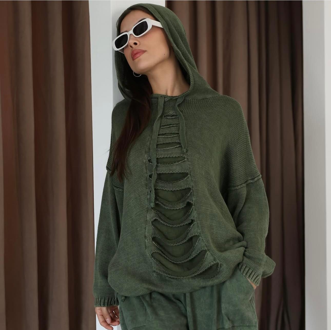 Etnik desenleriyle göz alıcı, dökümlü kesimiyle zarif bir görünüm sunan %100 pamuklu kazağımız, kapüşon detayıyla hem şık hem de fonksiyonel. Özgün tasarımıyla fark yaratmak isteyenler için ideal bir seçim.