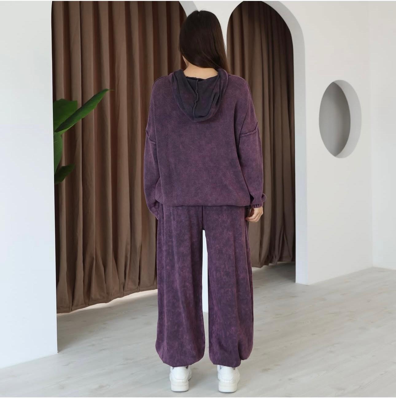 Kapüşon Detaylı Dökümlü %100 Pamuk Etnik Kazak