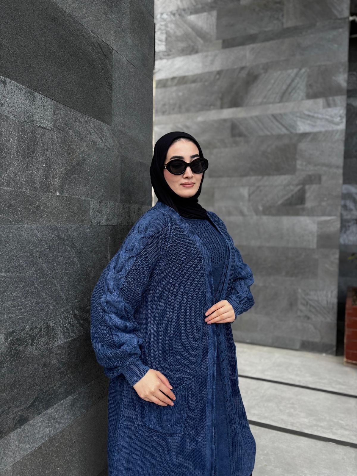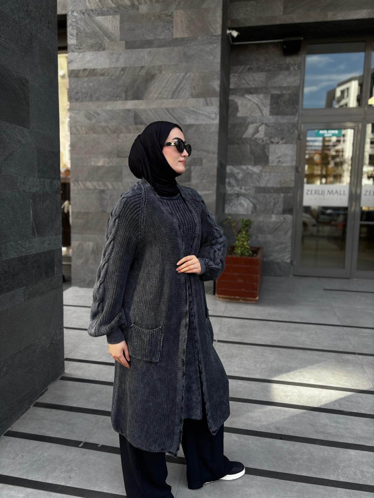 Doğal kumaşların konforunu zarif örgü detaylarla buluşturan uzun hırkamız, gardırobunuzun vazgeçilmez parçası olmaya aday. %100 pamuk kumaşı ve kollarındaki özenle işlenmiş örgü detaylarıyla hem rahat hem de şık görünmenizi sağlar.