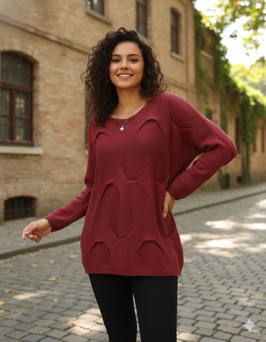 %100 Pamuk Rahat Kalıp Tasarım Kazak