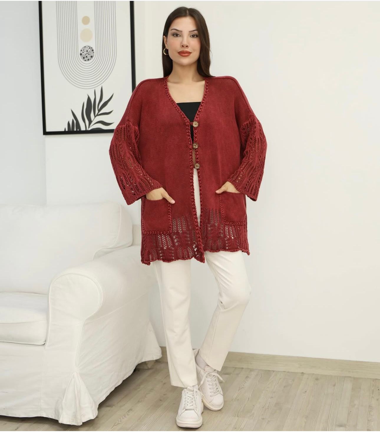 Ara Boy Cep Detaylı %100 Pamuk Hırka