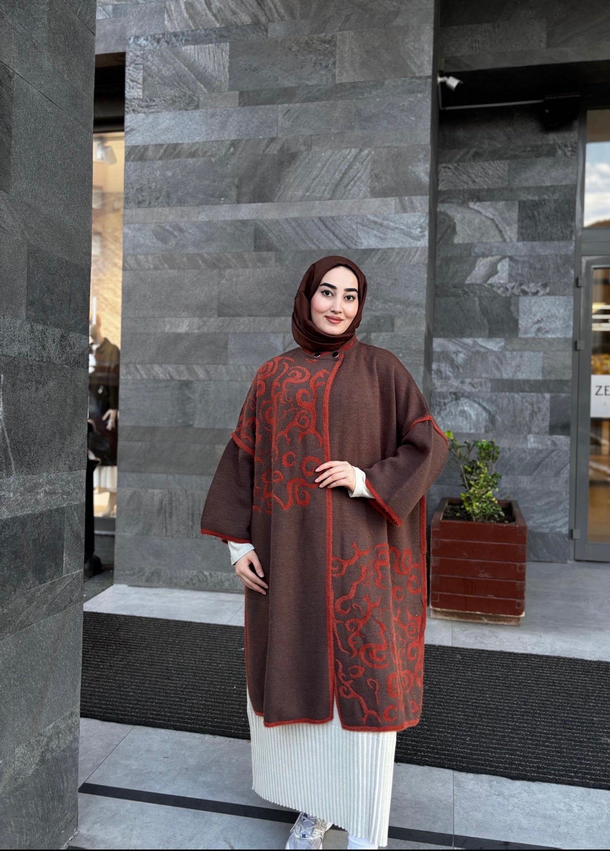 Etnik desenleri ile dikkat çeken özgün bir tasarım. Panço modeli sayesinde rahat kullanım sunar. Bohem ve şık görünüm arayanlar için mükemmel bir seçim.