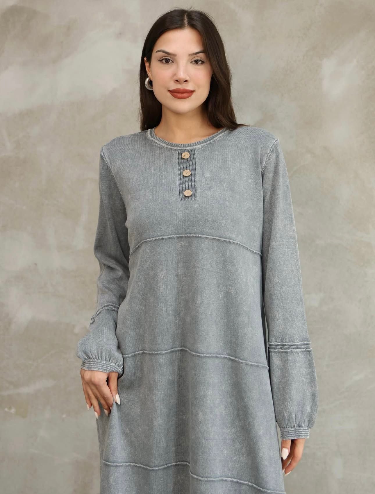 Yandan Düğmeli %100 Pamuk Dokuma Elbise