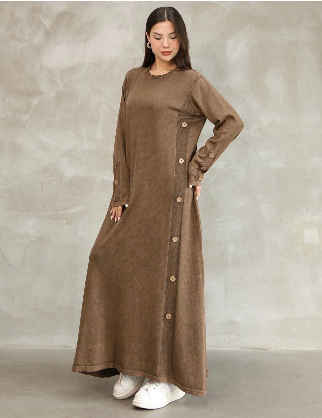 Yandan Düğmeli %100 Pamuk Dokuma Elbise